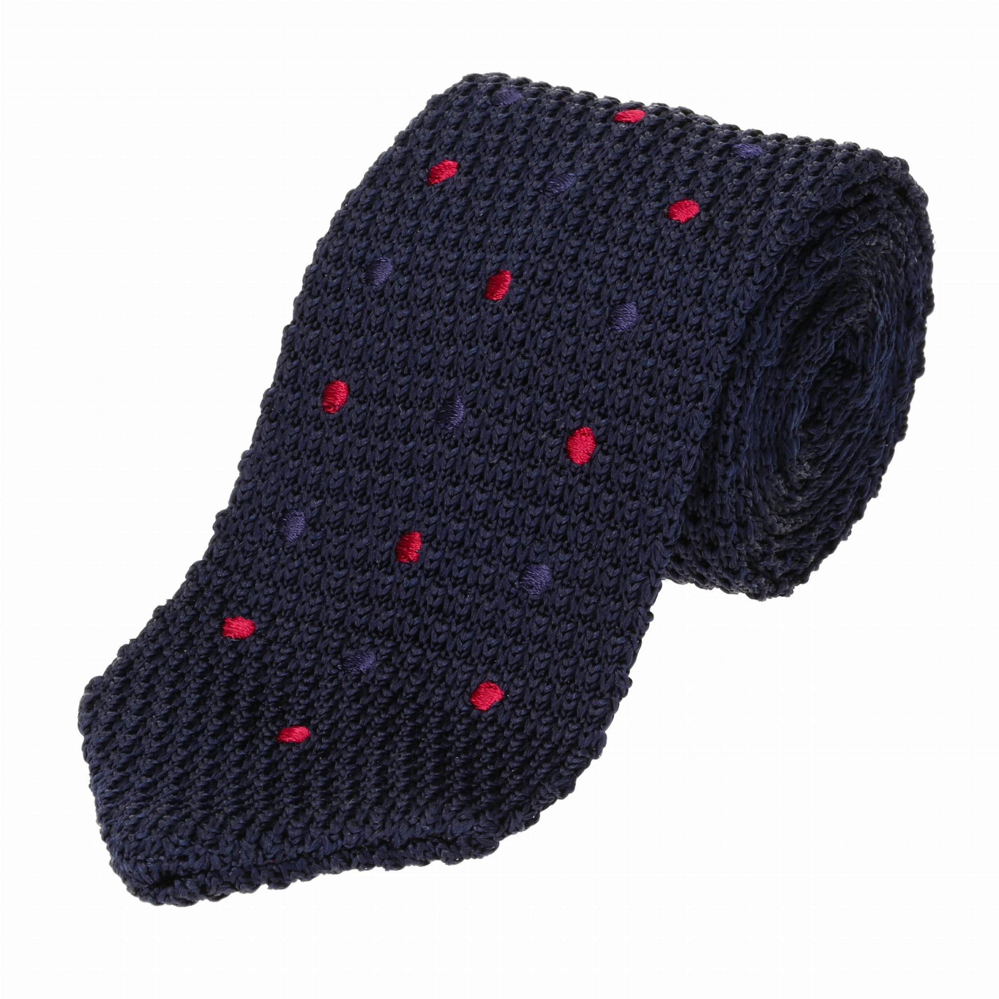 Knit jedwabny granatowy w groszki / kropki - krawat dzianinowy zakończony na trójkąt EM