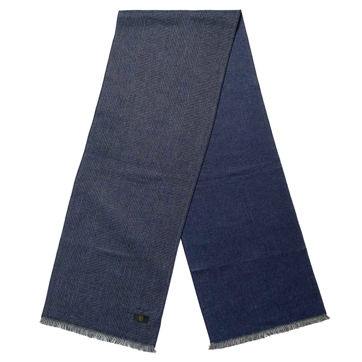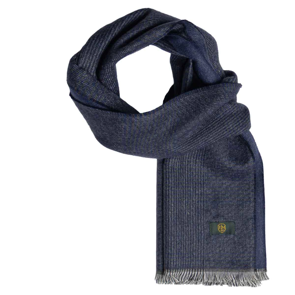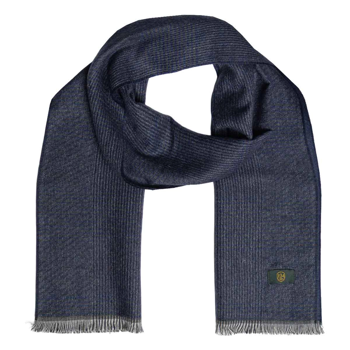 Męski szalik wełniany w kolorze granatowym w kratę dwustronny EM