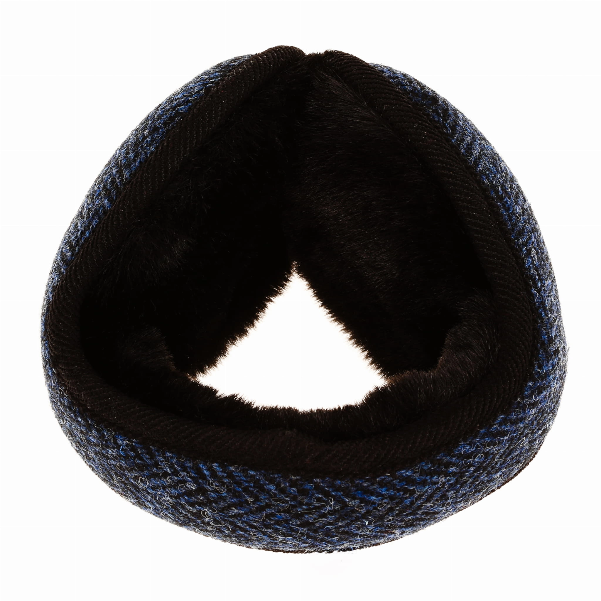 Nauszniki zimowe granatowe w pepitkę z wełny Harris Tweed z ociepleniem - składane EM
