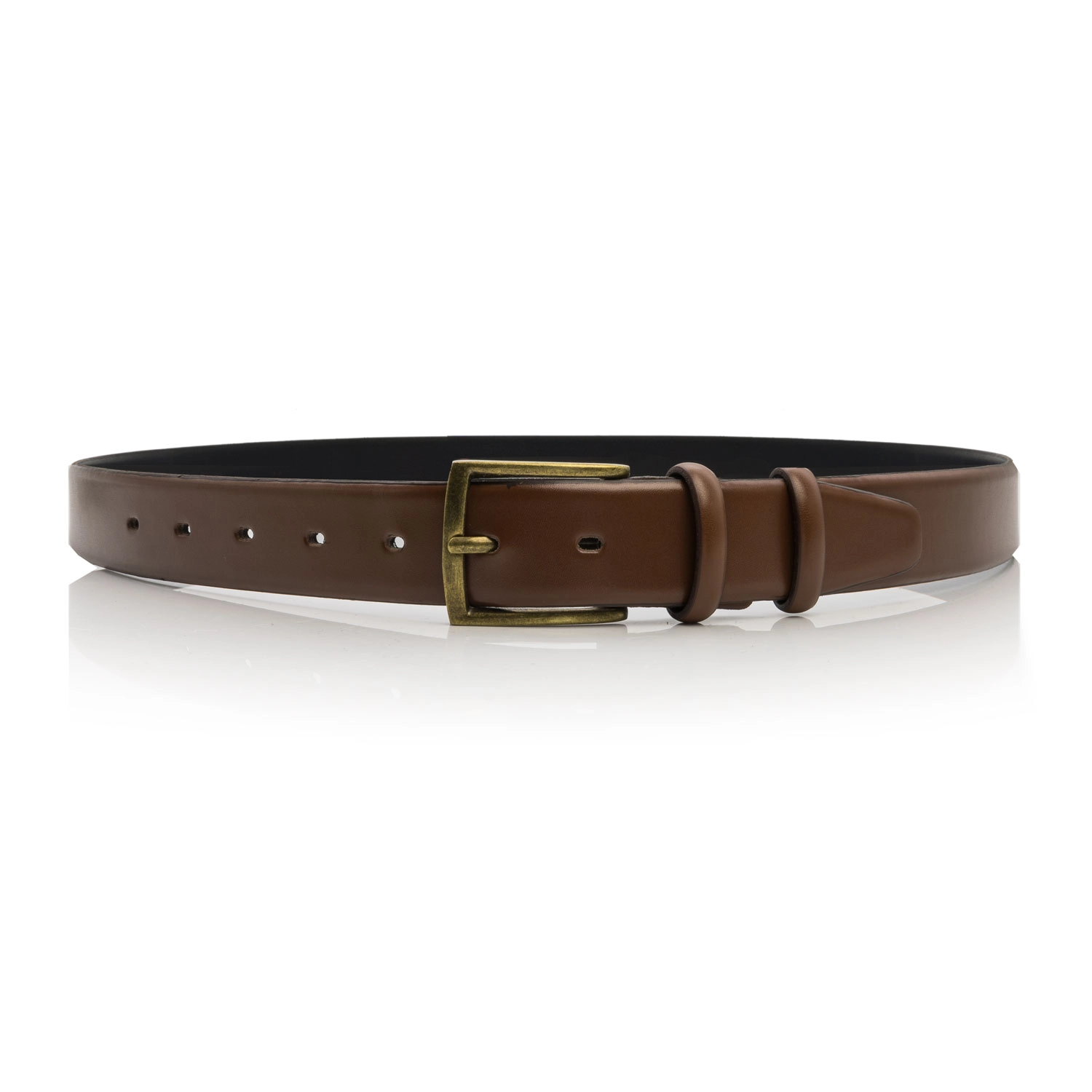 Pasek garniturowy klasyczny skóra naturalna – ciemny brąz - Brązowy / Camel ze złotą brązową klamrą