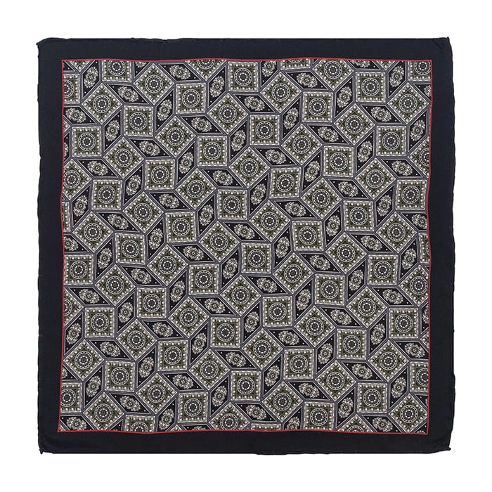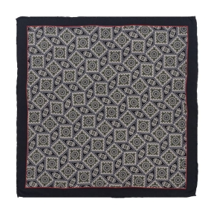 Poszetka jedwabna czarna we wzory obszyta ręcznie EM 61