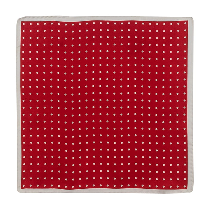 Poszetka jedwabna czerwona w białe kropki obszyta ręcznie EM 53