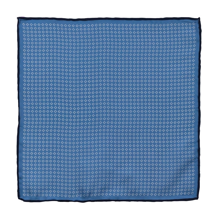 Poszetka jedwabna niebieska w mikrowzór obszyta ręcznie EM 48