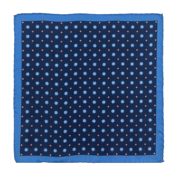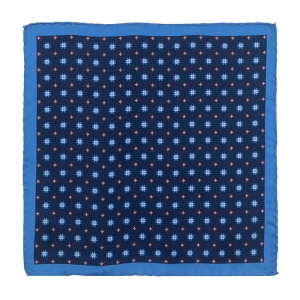 Poszetka jedwabna niebieska we wzory obszyta ręcznie EM 57