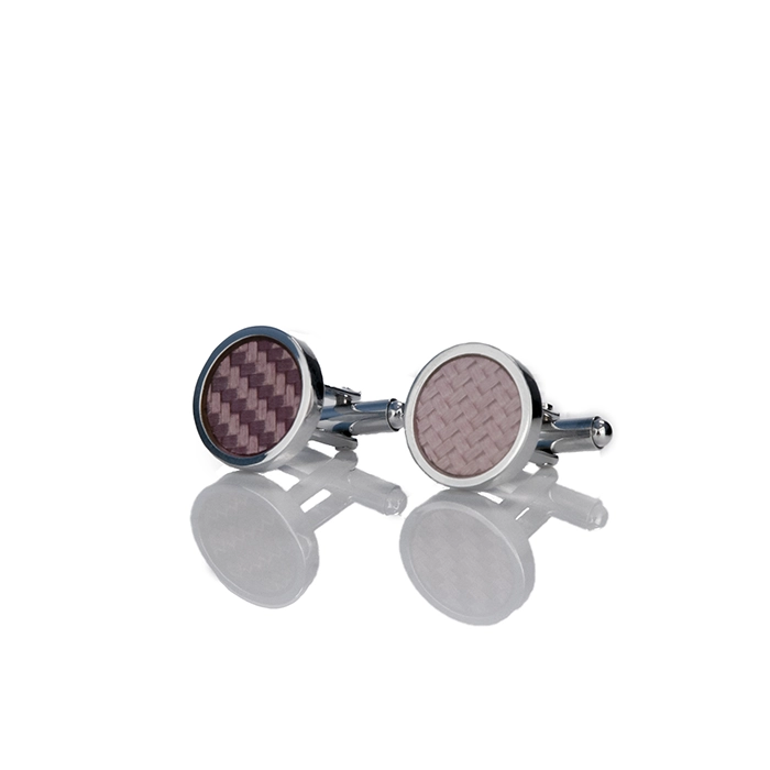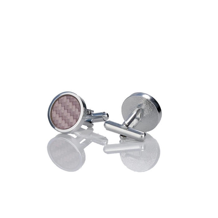 Spinki do mankietów klasyczne srebrne okrągłe z różowym oczkiem EM 11