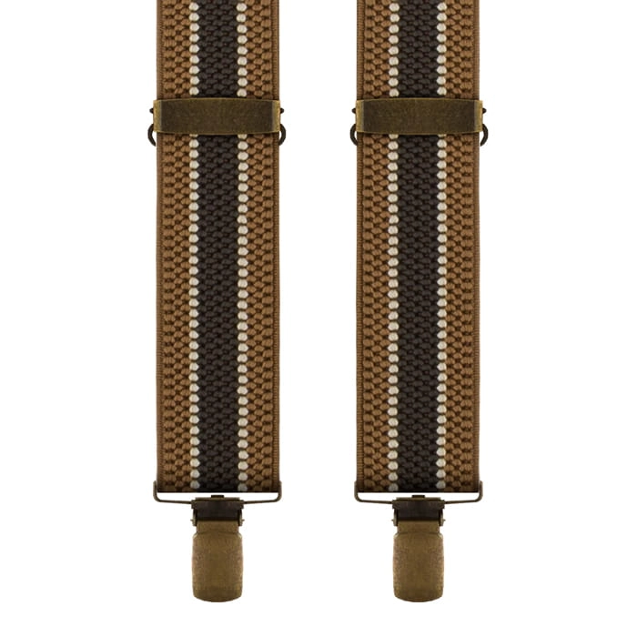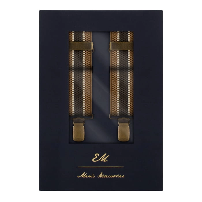 Szelki do spodni w kolorze beżowo-zielonym w paski EM 12