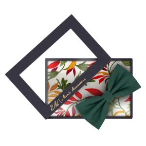 Zestaw dla mężczyzny: zielona (butelkowa zieleń) mucha + kolorowa poszetka bawełniana zapakowane w pudełko EM 53
